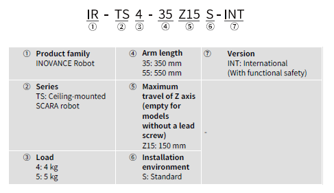Chi tiết kỹ thuật Scara Robot Inovance IR-TS5-55Z15S-INT: