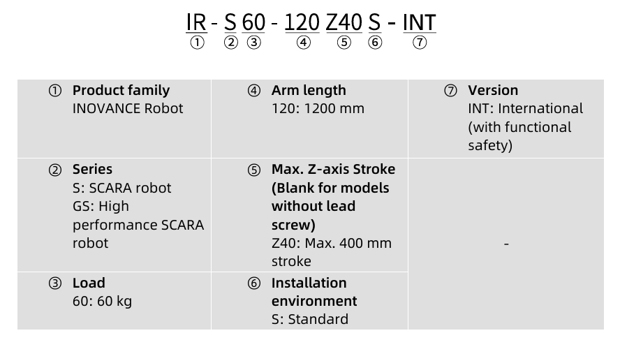 Chi tiết kỹ thuật Scara Robot Inovance IR-S60-120Z40S-INT: