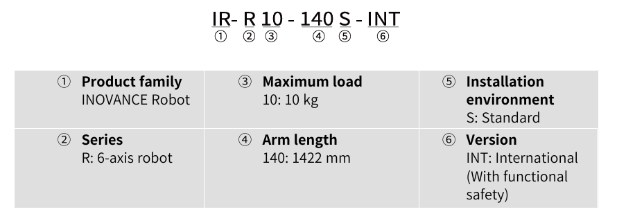 Chi tiết kỹ thuật Six-joint Robot Inovance IR‑R10‑140S‑INT: